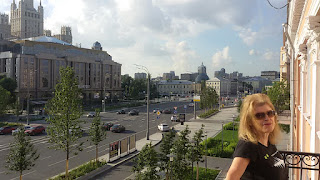 Δοκιμάσαμε ασιατικές γεύσεις (για να μπαίνουμε στο κλίμα του ταξιδιού μας!) σ'ένα από τα δεκάδες εστιατόρια του τελευταίου ορόφου και με ταξί κατευθυνθήκαμε στο κεντρικό ξενοδοχείο μας, Arbat Residence Hotel 4 *, στην λεωφόρο Novinskiy. Σχεδόν απέναντι μας η πρεσβεία των Η.Π.Α. και μια ακόμη από τις επτά "αδελφές του Στάλιν", το συγκρότημα κατοικιών στην Kudrinskaya square.
