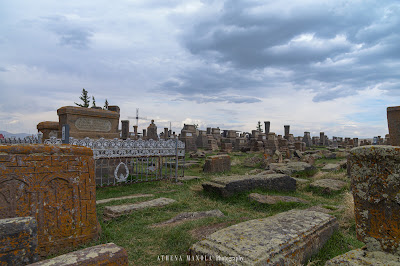 Το κρύο ήταν τσουχτερό και ο αέρας δυνατός όταν στην συνέχεια επισκεφθήκαμε το νεκροταφείο Noratus, που βρίσκεται στην επαρχία Gexarkunik, κοντά στο χωριό Noratus. Η τοποθεσία είχε εποικισθεί από την Εποχή του Χαλκού, όπως μαρτυρούν το μεγαλιθικό οχυρό κοντά στο χωριό και άλλα τεχνουργήματα που πιθανολογείται να έχουν κατασκευαστεί κατά την Εποχή του Χαλκού και του Σιδήρου. Το σημερινό χωριό ιδρύθηκε το 1829. Το Νoratus αναφέρεται στις ιστορικές πηγές ως «οχυρωμένο χωριό». Τον 13ο και τον 14ο αιώνα, η περιοχή ανήκε στην οικογένεια των Ζακαρίων. Τον 16ο αιώνα, ένας από τους τέσσερις πρίγκιπες του Gexarkunik, ο Barik Melik από την οικογένεια Azarian, μετέφερε την πρωτεύουσά του από το Gandzak στο Noratus. Υπάρχουν δύο ναοί στην περιοχή, από τους οποίους ο πρώτος, αφιερωμένος στην Μητέρα του Θεού, βρίσκεται στο κέντρο του χωριού και ιδρύθηκε τον ένατο αιώνα από τον πρίγκιπα Σαχάκ. Ένας μεγάλος αριθμός χατσκάρ και ταφόπλακες παραμένουν στην αυλή του ναού αυτού, μεταξύ των οποίων είναι το παλαιότερο γνωστό χάτσκαρ, χρονολογημένο από το 996, που τώρα εκτίθεται στο Ιστορικό Μουσείο στο Γερεβάν. Ο δεύτερος ναός βρίσκεται στα νοτιοανατολικά όρια του νεκροταφείου και είναι αφιερωμένος στον Άγιο Γρηγόριο. Πιθανολογείται ότι κατασκευάστηκε τον 13ο αιώνα, αν και οι επιγραφές και το αρχιτεκτονικό σχήμα του κτιρίου υποδηλώνουν ότι μπορεί να χρονολογείται από τον 10ο αιώνα. Στον δυτικό τοίχο υπάρχει επιγραφή του πρίγκιπα Ηρακλή Χαβνούνι. Σύμφωνα με τον καθολικό Συμεών Ερεβάντσι, τον 17ο αιώνα ο ναός ήταν γυναικεία μονή με το όνομα Doputs-vank ή Dopunts-vank.